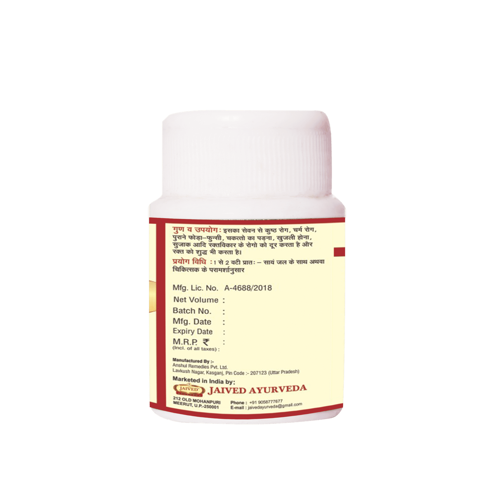 This powerful Rasayan is particularly effective in treating skin conditions like boils, and rashes caused by blood health . It also supports the relief of fever, improves digestion, and alleviates joint pain. Its primary function is to purify the blood and strengthen the body by toxins, which helps in revitalizing weakened tissues and organs.