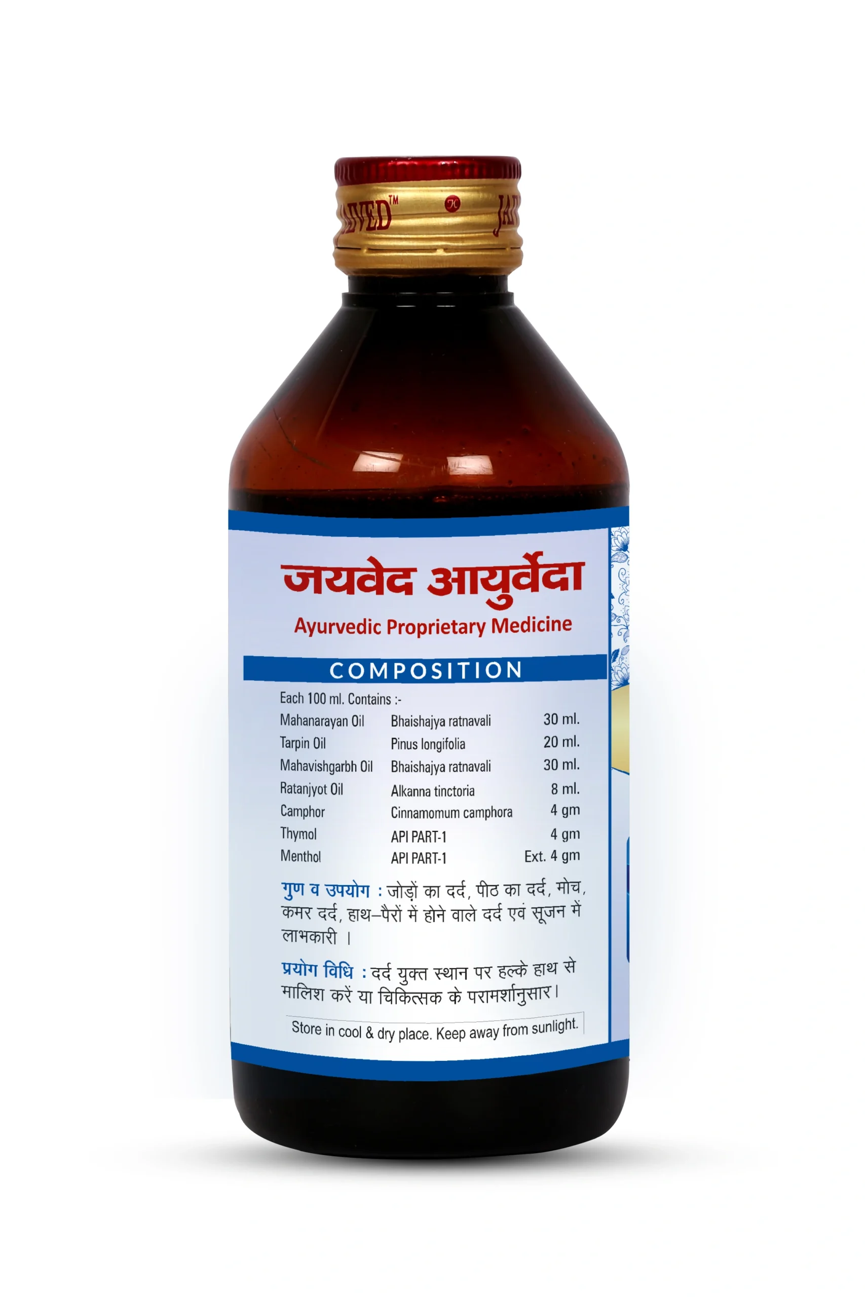 Jaived Ayurveda Dardyoga Oil is a powerful Ayurvedic pain relief formulation made from time-tested herbs that help soothe muscle pain, joint stiffness, and body aches. Enriched with natural ingredients like Gandhapura Oil, Nilgiri Oil, and Mahanarayan Tel, it penetrates deep into the skin to ease inflammation, improve blood circulation, and restore mobility.